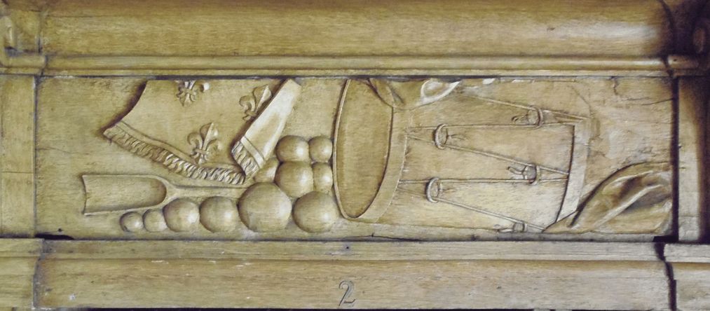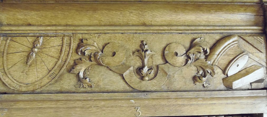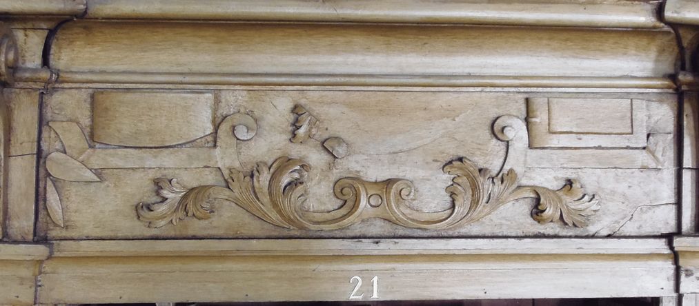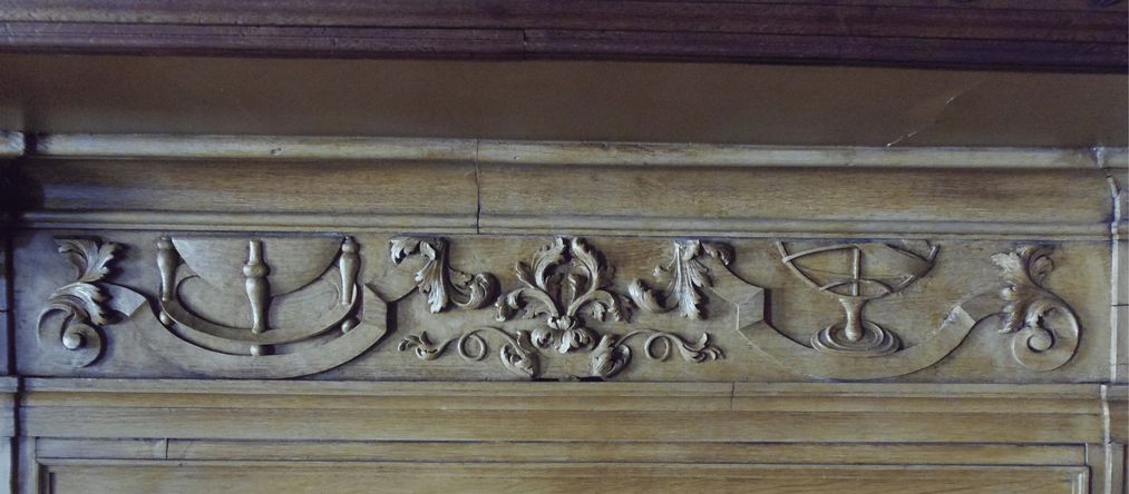 Au cours de l’installation des boiseries de La Ferté dans la salle d’étude, et sans doute au cours de la précédente installation dans l’ancien collège, les bandeaux ont été recoupés afin de s’adapter à leur nouvel emplacement. C’est pourquoi ils ont été mutilés. Certains éléments composant le décor ont pu également être déplacés dans les panneaux, voire enlevés d’un panneau pour être replacés sur un autre.